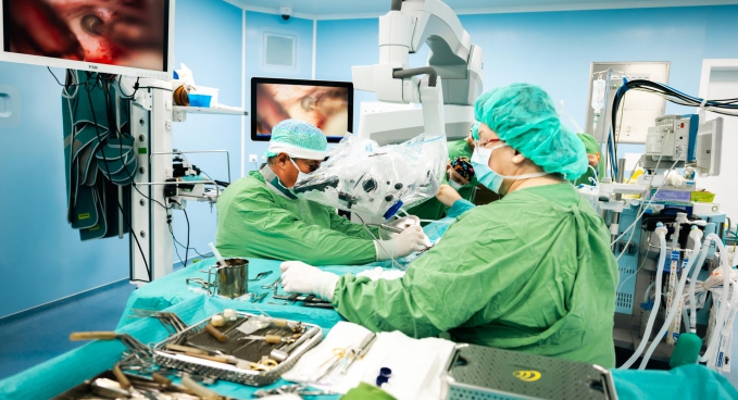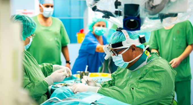 Prof. Dr. Rovó László az első okos cochleáris implantátumot ülteti be 2025. június 25-én, Szegeden. Fotó: Sahin-Tóth István