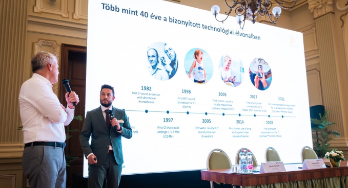 A sajtótájékoztatón részt vett Lantos Júlia, a Magyar Cochleáris Implantáltak Egyesületének elnöke, aki az implantált közösség értékeit és a társadalmi inklúzió fontosságát hangsúlyozta. Elmondta, hogy a technológiának köszönhetően a hallásproblémával születettek a jövőben, ahogy egyre idősebbé válnak, akár egyre jobban hallhatnak.